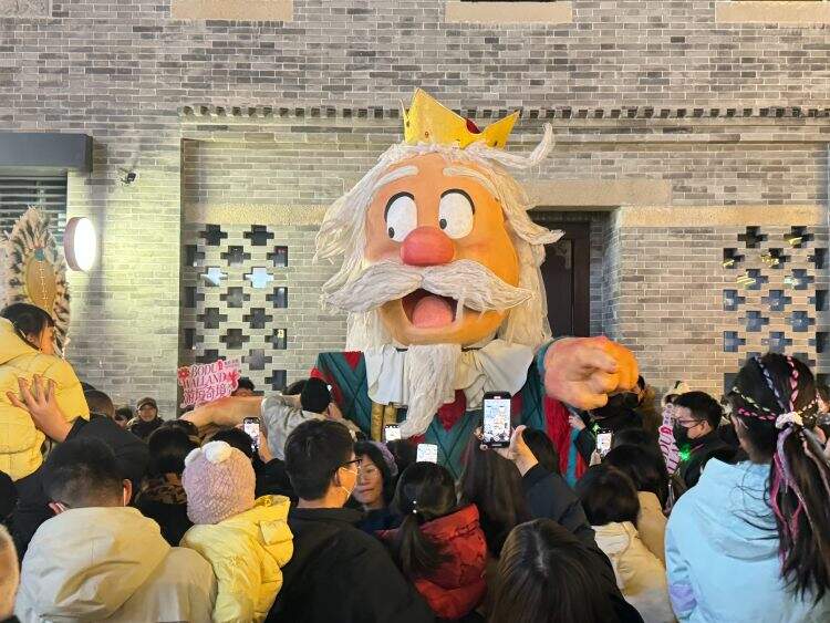 当冬日的晚风拂过古城垣,亳都·新象正娓娓铺展出一场好戏。12月20日晚,往来穿梭的游客、翘首以盼的市民汇聚于此,他们的目光热切地投向该街区一处紧闭的大门,期待着剧目《愚蠢的国王》精彩上演。