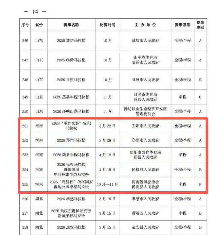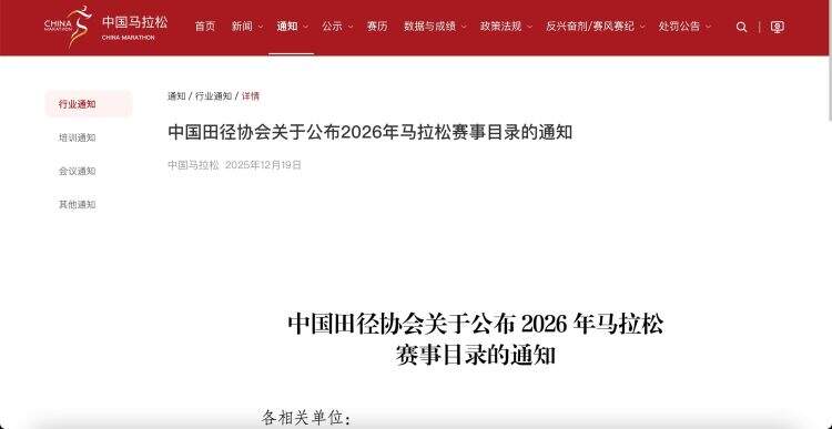 12月24日,记者从河南省体育局获悉,中国田径协会近日发布《关于公布2026年马拉松赛事目录的通知》,对外公布了《2026年全国马拉松赛事目录》(以下简称《目录》)。2026郑州马拉松作为A类赛事同时也是郑州市唯一一场马拉松赛事入选《目录》。