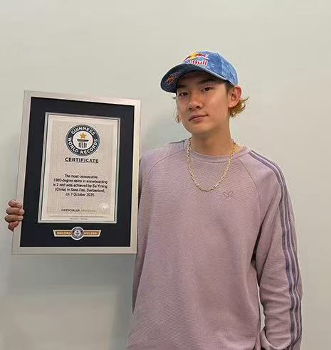 北京时间12月25日,吉尼斯世界纪录社交账号发文称:近日, 苏翊鸣在今年10月7日完成的“背靠背1980”动作获得了吉尼斯世界纪录的官方认证,确认他创造了“一次连贯滑行内完成单板滑雪1980度转体次数最多”的吉尼斯世界纪录。在此之前,他还是“首个完成内转1980抓板动作的运动员”吉尼斯世界纪录保持者。