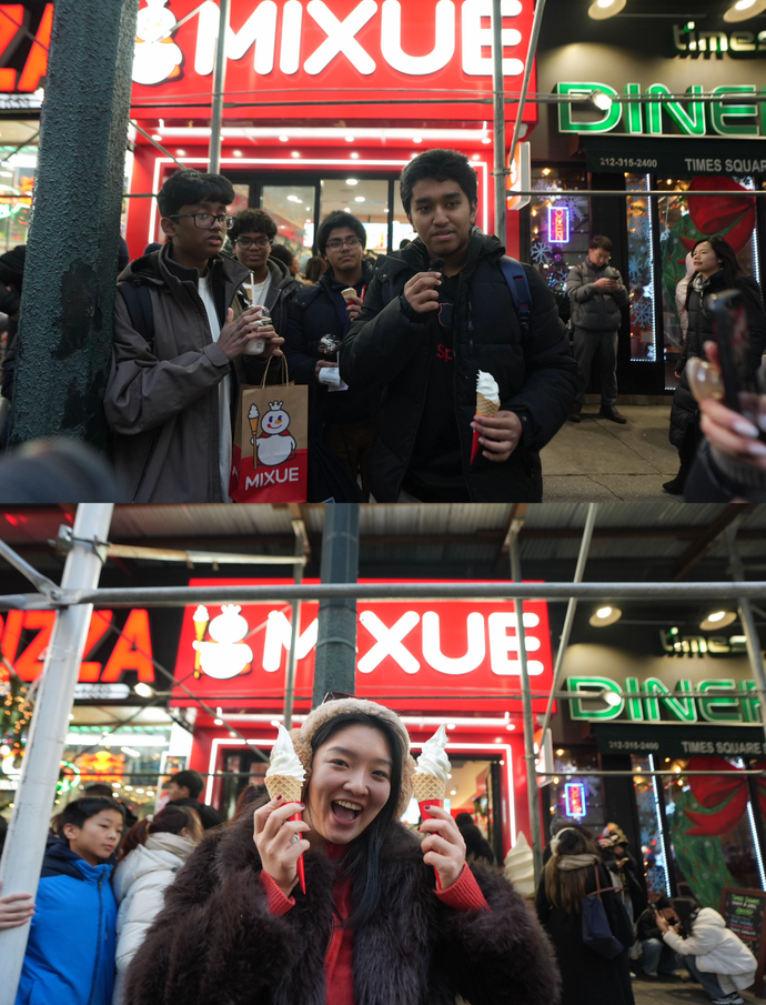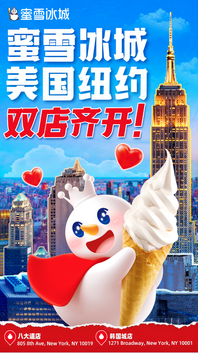 北京时间12月25日,蜜雪冰城美国纽约双店齐开,“雪王”带着冰淇淋与茶霸屏纽约时代广场,让中式甜蜜席卷全球。