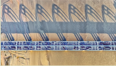 黄河大桥横跨黄河,桥上车流滚滚,恰是连通南北的便捷通途。