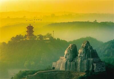晨光中的炎黄二帝像。