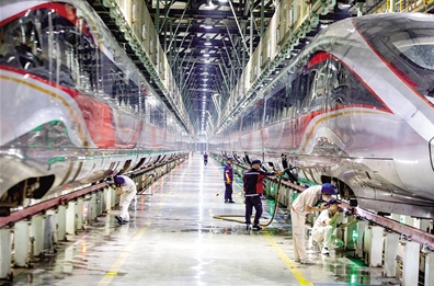 国庆中秋“双节”郑州高铁动车段工作人员在精检细修高铁动车组。