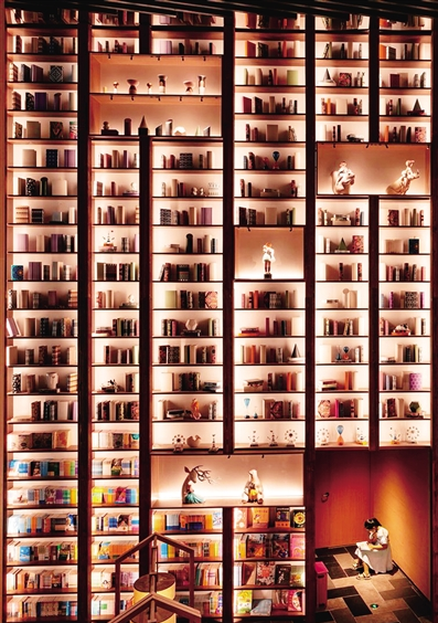 一个女孩在书店的角落安静地看书,越来越好的阅读环境让更多的人走进书店。
