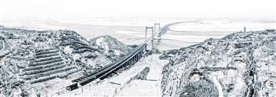 大雪刚过的黄河桃花峪大桥(无人机拍摄)。
