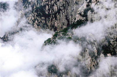 云雾缭绕的三皇寨将奇峻的山色化为一座悬浮于云端的“仙境”。