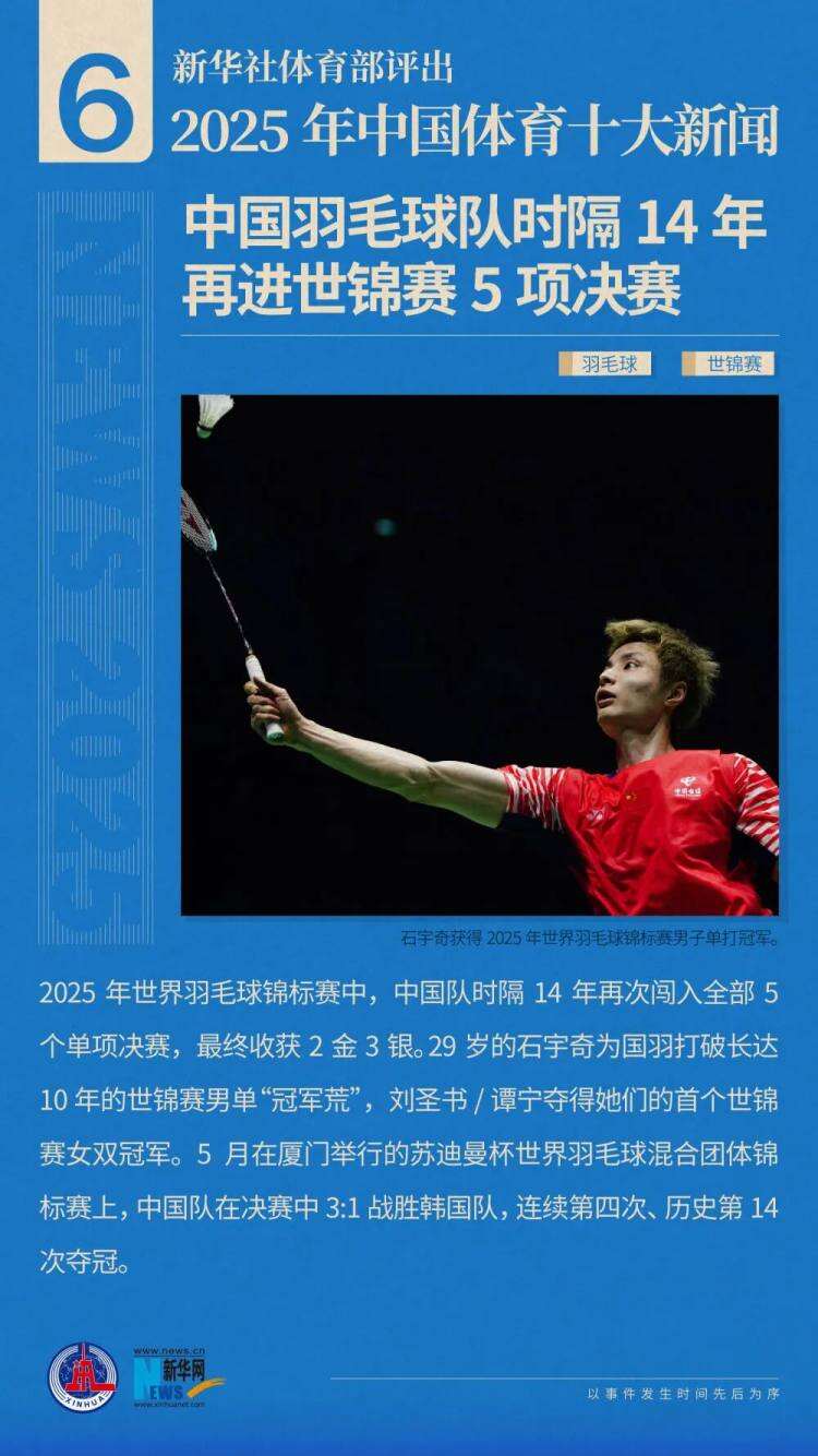 新华社体育部评出2025年中国体育十大新闻(以事件发生时间先后为序):