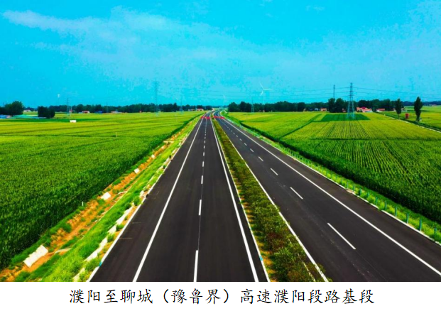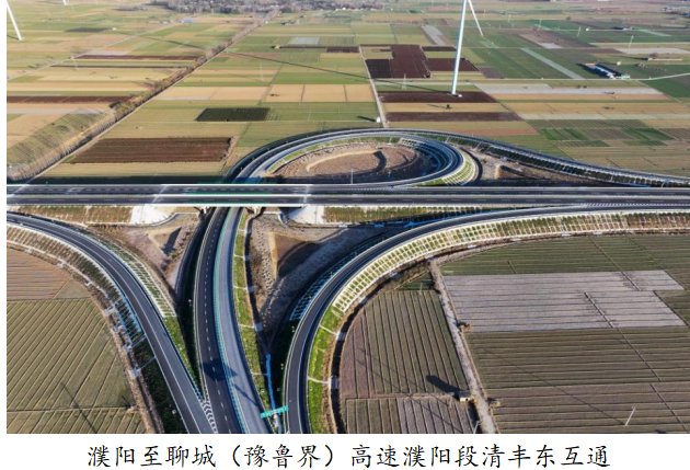 4.濮聊(豫鲁界)高速濮阳段。全长36.14公里,双向四车道,设计时速120公里/小时。项目进一步加强了渤海经济区与“中原城市群”的经济纽带,对于完善区域路网结构、缓解交通压力、优化营商环境、便利群众出行作用显著。