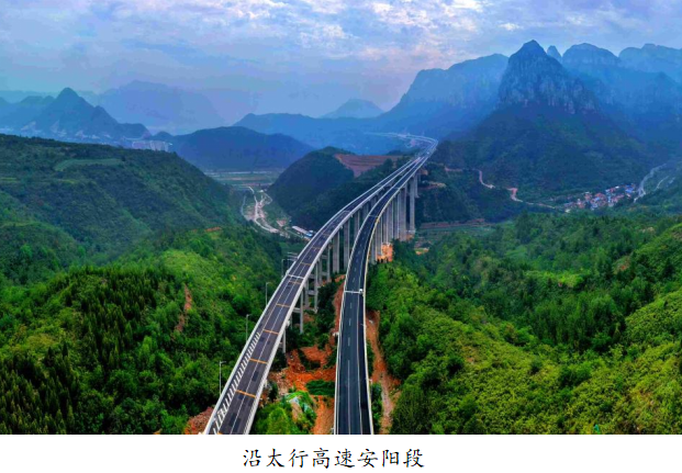 7.沿太行高速焦作至济源段。全长52.224公里,双向四车道,采用“分段限速”标准,其中,K0+000-K48+748.143段设计时速100公里/小时;K48+748.143-K52+075.866段设计时速80公里/小时。项目建成通车后,将在太行山南麓形成一条旅游与资源协同发展的快捷通道,对优化区域路网结构、带动沿线产业升级效果显著。