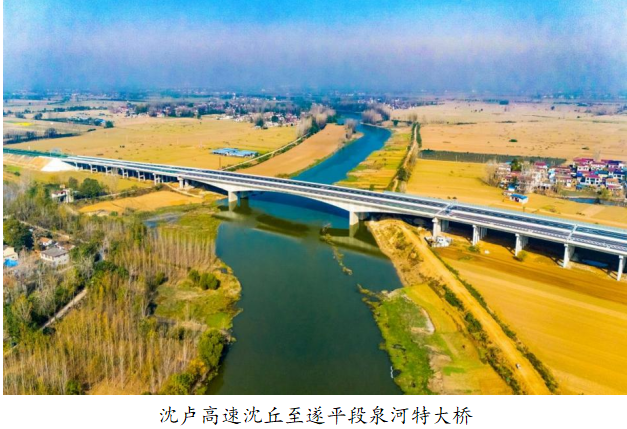 13.沈卢高速沈丘至遂平段。全长105.962公里,双向四车道,设计时速120公里/小时。在豫中南地区形成一条平行于国家干线的省际横向加密通道,东接安徽,西连陕西,加强了“中原城市群”与“长江经济带”的联系。