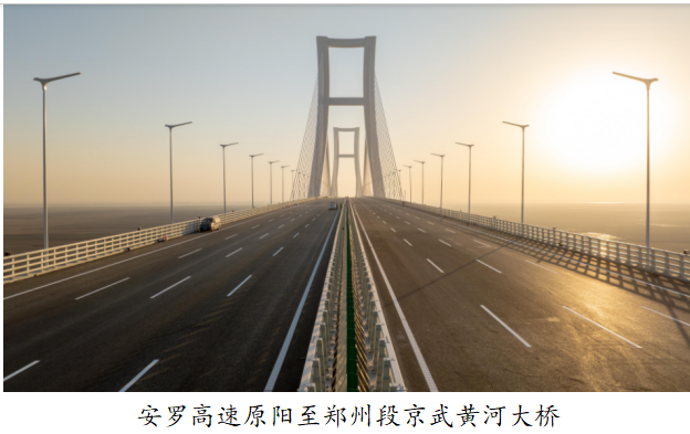 1.安罗高速原阳至郑州段。全长21.655公里,双向八车道,设计时速120公里/小时。作为G0424京武高速的重要组成部分,它的建成在繁忙的京港澳与大广高速之间新增一条南北大动脉,对强化“中原城市群”与雄安新区、长江中游城市群的连接,服务共建“一带一路”具有战略意义。