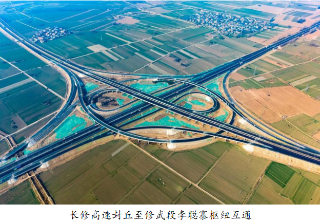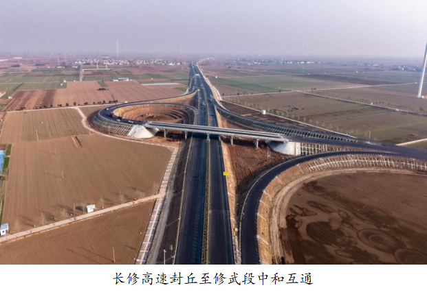 11.长修高速封丘至修武段。全长88.198公里,双向四车道,设计时速120公里/小时。与既有高速共同构筑新乡绕城环线,形成新的东西向出省通道,加强了“中原城市群”与“山东半岛城市群”的联系。