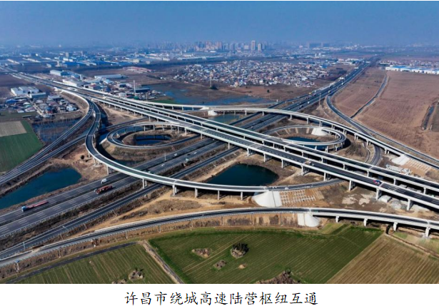 12.许昌市绕城高速。全长49.693公里,双向六车道,设计时速120公里/小时。有效分流过境交通运输压力,巩固河南交通枢纽地位,对构建“郑州都市圈”高速环线、保障许昌协同发展至关重要。