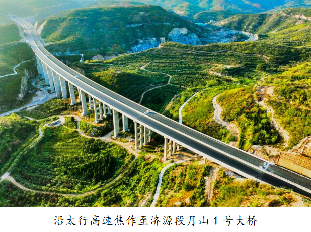 8.沿太行山高速西延。全长33.955公里,双向四车道,设计时速100公里/小时。进一步整合了太行山沿线旅游资源与工业资源,为济源产城融合示范区高质量发展提供了坚实交通运输保障。