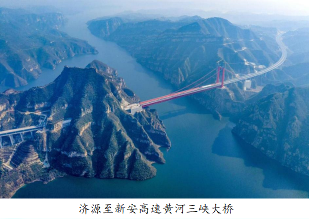5.沿黄高速武陟至济源段。全长100.139公里,双向六车道,设计时速120公里/小时。与既有通道共同构成黄河北岸新的交通走廊,是服务黄河流域生态保护和高质量发展国家战略的关键基础设施,对促进郑州、洛阳都市圈互动具有重要意义。