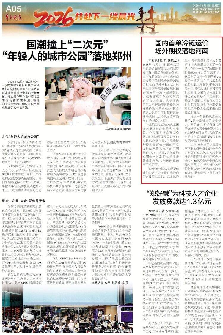 2025年12月31日,记者从郑州商品交易所获悉,经向监管部门及中国期货业协会备案,由中粮期货设计,挂钩郑州商品交易所编制的冷链物流运价指数的场外期权产品,近日在河南华鼎冷链仓配科技有限公司与河南瑞通慧达供应链管理有限公司间完成了首次交易。这是国内首单以冷链物流运价指数为标的的场外期权业务,标志着以金融衍生工具管理运价波动风险,从设想变为可操作的行业解决方案。