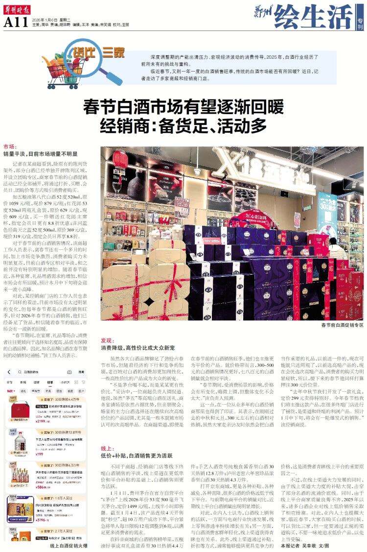 临近春节,又到一年一度的白酒销售旺季,传统的白酒市场能否有所回暖?近日,记者走访了多家商超和经销商门店。
