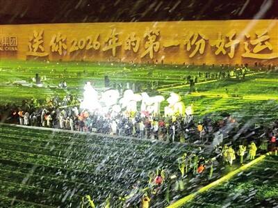 元旦假期,只有河南·戏剧幻城用21个经典剧场搭配限定彩蛋剧场、超150场演出的排布,以及主剧优惠加购政策(20.26元),极大丰富了观众的观剧体验。2025年12月31日当天,园区更是有瓜分现金红包、好运刮刮卡等多重福利,每位游客都收获了新年好运。当晚,雪花纷飞中,328米长的夯土墙上,投射着提前征集的新年心愿,游客们在麦田之上、在灯光秀中打卡拍照,在仪式感中共迎2026年的新年曙光。