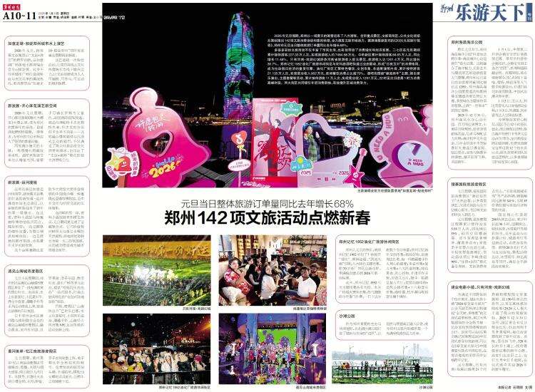 2026年元旦假期,郑州以一场漫天的瑞雪迎来了八方游客。全市重点景区、文旅商街区、公共文化场馆共策划推出142项文旅消费活动和惠民举措,全力激发文旅市场活力。据携程最新发布的《2026元旦旅行报告》,郑州市元旦当日整体旅游订单量同比去年增长68%。