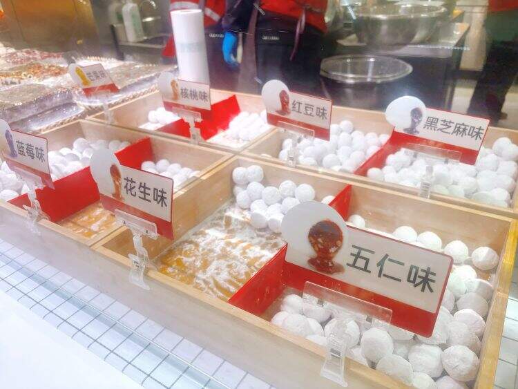 带女儿购物的周女士一手拿小马宝莉款,一手取五指毛桃款:“女儿是小粉丝。我买养生款当早餐,还是熟悉的温润口感。”年轻白领小孙选蛋仔派对和酒酿圆子:“和同事‘开黑’买同款有意思。酒酿圆子煮奶茶也搭,但入口终究是汤圆的那份糯。”