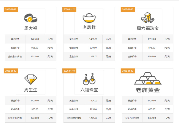 美国纽约商品交易所黄金期货价格11日创历史新高,一度突破每盎司4612美元。受此影响,12日国内金饰品牌克价也有所上涨。记者查询发现,老庙黄金报价1429元/克,单日上涨22元;周生生报价1429元/克,单日上涨19元;老凤祥报价1428元/克,单日上涨29元。