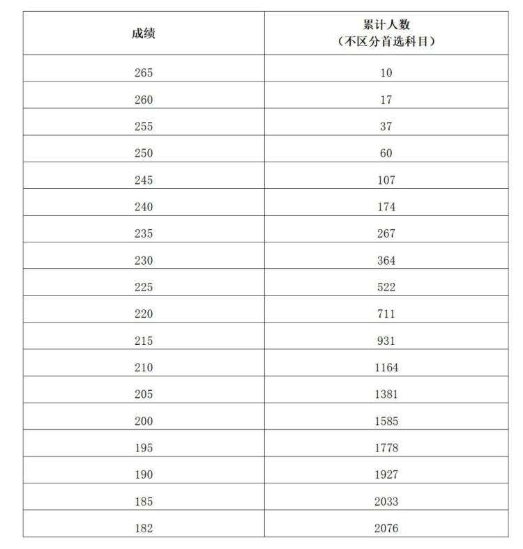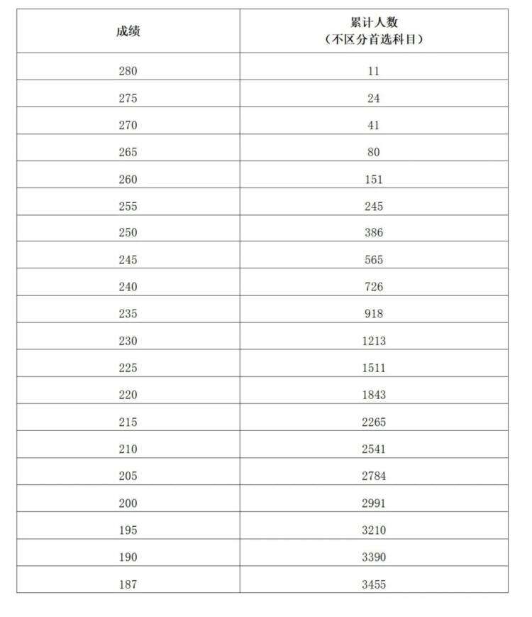 注:累计人数指该对应分数及以上考生累计人数