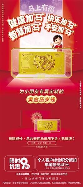 简介:2025年12月18日,中国建设银行正式发布“善建成长·总台春晚马年压岁金”产品,在2026马年来临之际,以“金马迎祥 骐骥驰骋”为主题,寄托对新时代少年儿童健康成长、勇毅进取的祝福,将“骐骥驰骋”的新春期许传递至千家万户。