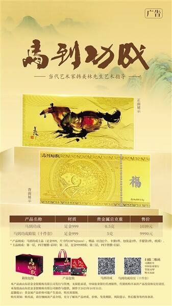 简介:作为生肖贺岁的经典延续,“马到功成”贺岁金是文化与价值的双重献礼。特邀中国当代艺术家韩美林先生为艺术指导,这位5次执掌央行生肖纪念币设计的艺术大师,将其标志性的极简美学与马的昂扬神韵融合。骏马扬鬃奋蹄,暗藏“马到功成”的美好寓意,搭配山花烂漫纹与太阳纹图腾,既承载着丝路文明的坚韧内核,又传递着向阳而生的奋进力量。
