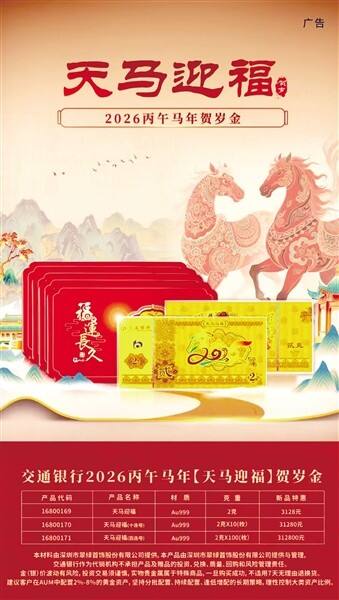 简介:2026年交通银行延续推出十二生肖贺岁金系列收官之作,正面以抽象数字“2026”与“马”形象巧妙结合,搭配细密花纹和传统吉祥纹饰;背面融入中国传统剪纸艺术和百福图案,寓意新的一年:天马迎福,百福具臻。