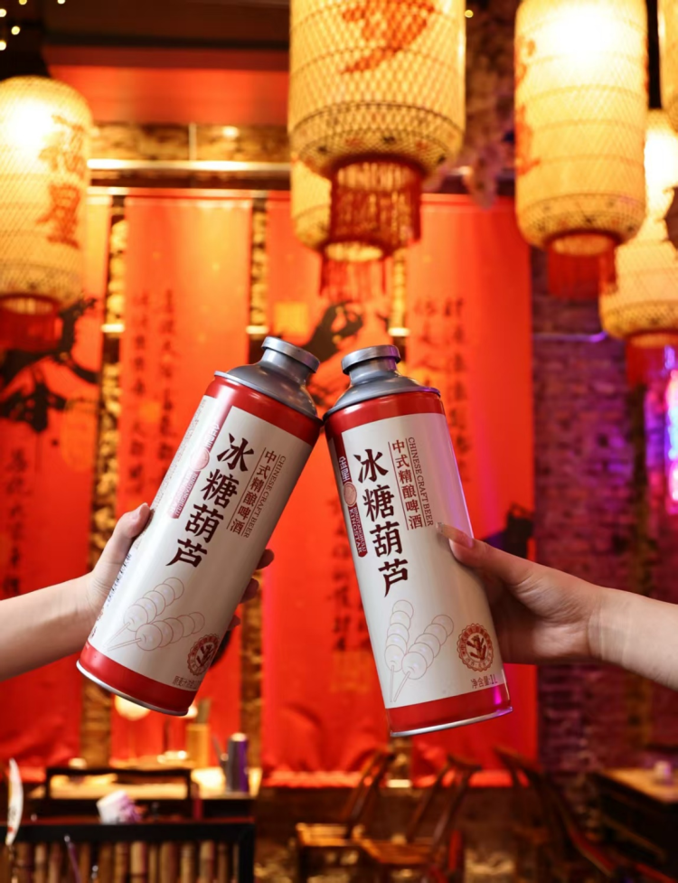 金星啤酒及时捕捉到了市场变化,从2024年开始向中式精酿转型,陆续推出毛尖、龙井绿茶、茉莉花茶、蜜桃乌龙等茶啤系列,以及冰糖葫芦、绿豆、水蜜桃、西瓜、砂糖桔等“国潮食啤”及“果韵佳酿”系列,精准契合年轻消费群体对“好喝、好看、好玩”的需求。通过茶叶与啤酒的融合,啤酒从“西方符号”转变为体现东方风味的饮品载体。
