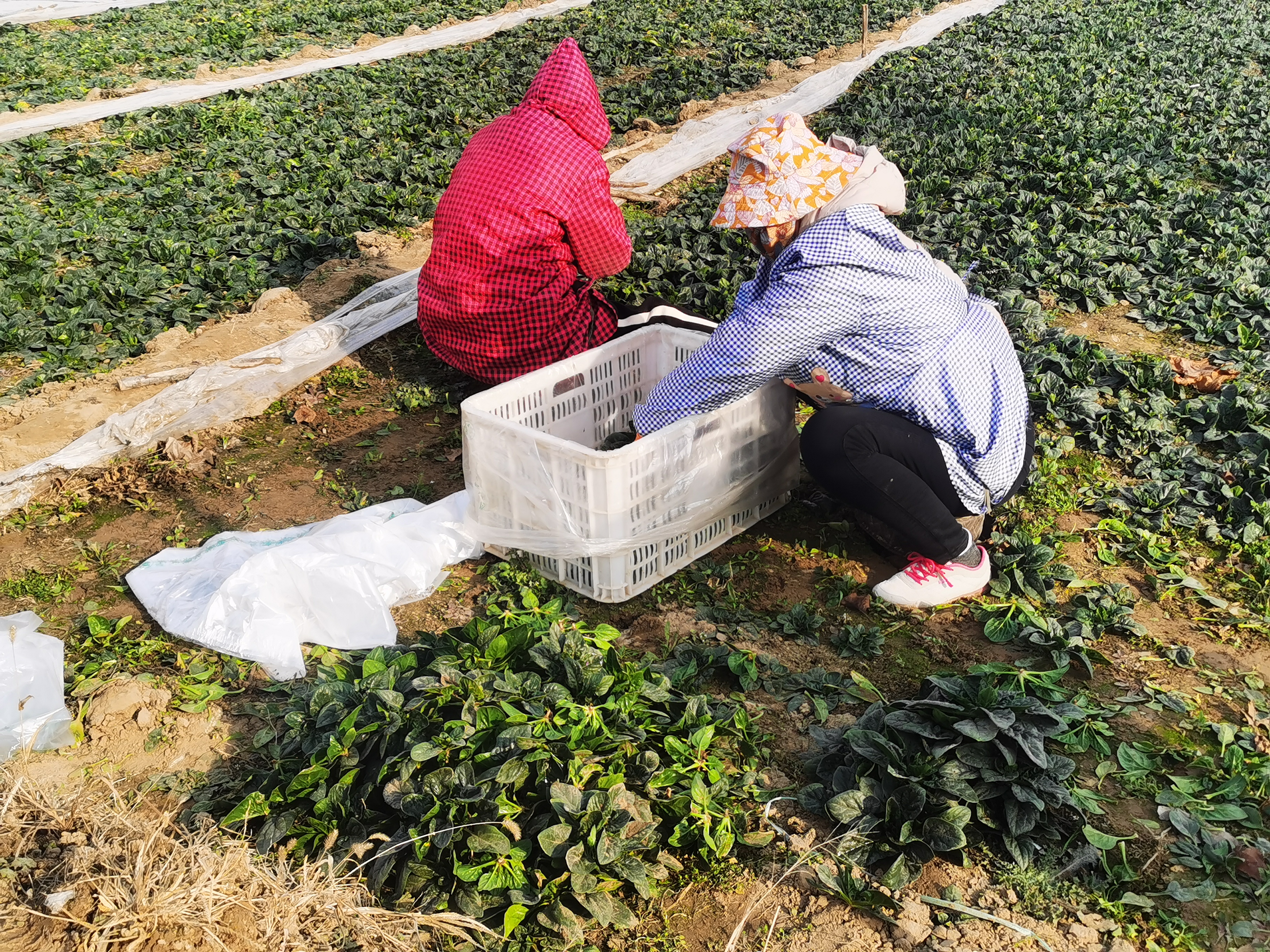 “我从1988年就开始种趴地菠菜,到今年整整38年了!”官渡桥村资深菜农田维富今年73岁,记者见到他时,他和老伴整坐在自家的趴地菠菜地里挖菠菜。田维富现在还能记起,他第一年种菠菜的时候,种了3亩,当时的价格是7毛钱一斤。这38年期间,他种最多的一年是种了6亩。他经历过菠菜贱价到一斤不值三两毛,也经历过价高到一斤十几块。“官渡桥的趴地菠菜差不多一年能种三茬,从7、8月间种头茬,10月份收,收完再种,12月份二茬收完再种,春节期间收完第三茬再种,最晚能卖到四月底。”