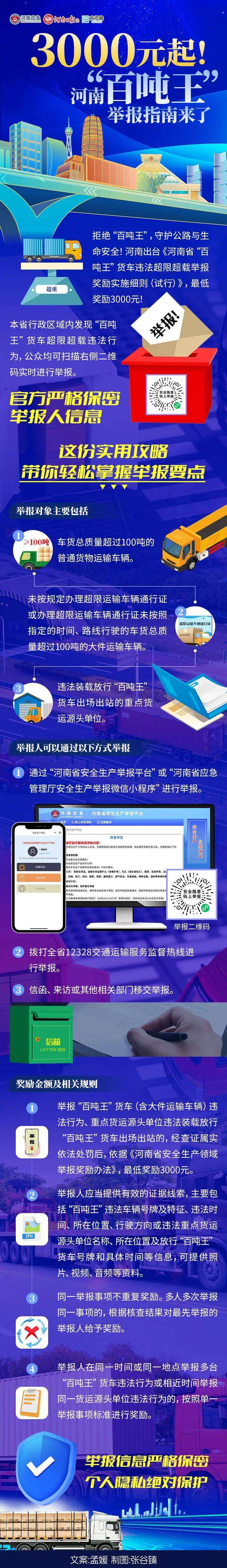 近日,河南省交通运输厅、省应急管理厅联合印发《河南省“百吨王”货车违法超限超载举报奖励实施细则(试行)》,鼓励公众举报严重违法超限超载行为,举报一经查实并依法处罚,最低可获3000元奖励。