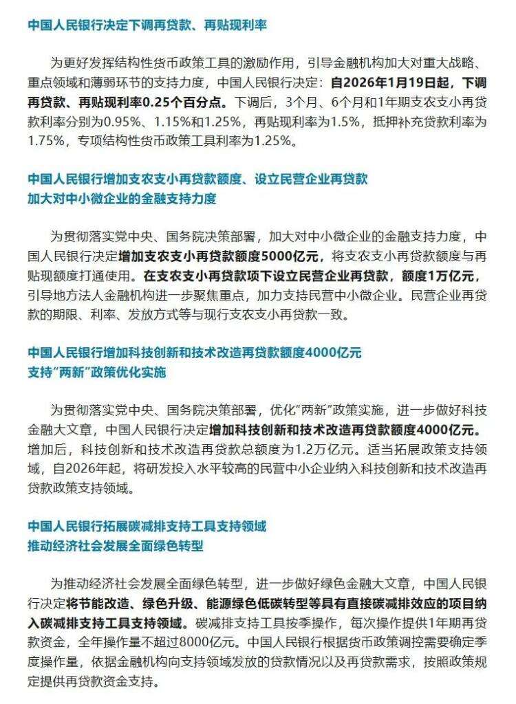 1月15日,中国人民银行发布多项金融政策,支持实体经济高质量发展↓