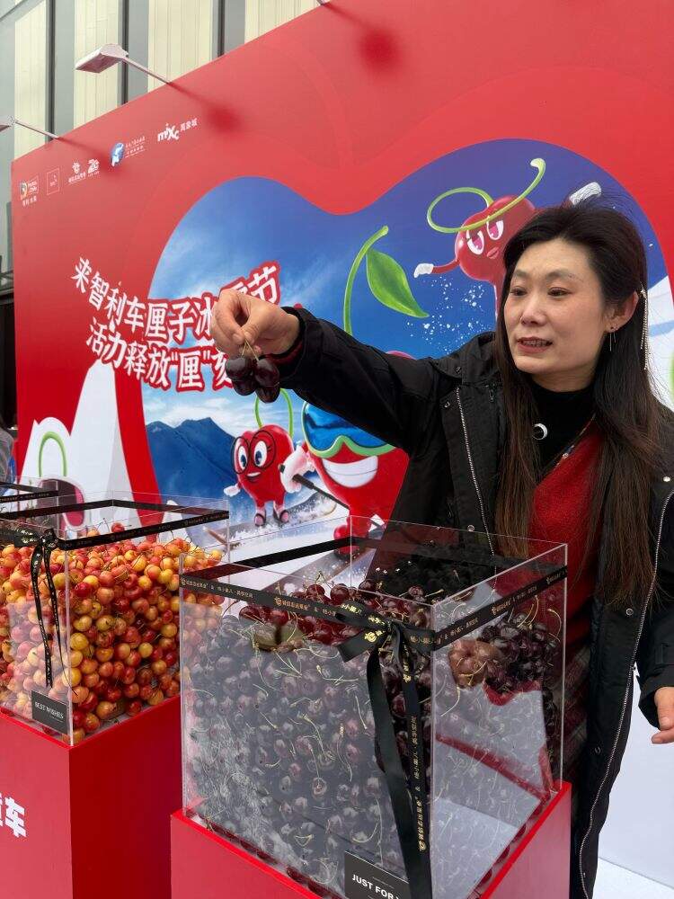 一颗车厘子,缩短两座城的距离。活动现场,桑提娜、黄车等多个智利车厘子明星品种集中亮相,不仅可供品鉴选购,更营造出冰雪主题互动装置、打卡体验区,将车厘子融入都市生活日常。一颗小小车厘子,正悄悄拉近郑州与智利的距离,也成为郑州对外开放故事中的“一口甜”。