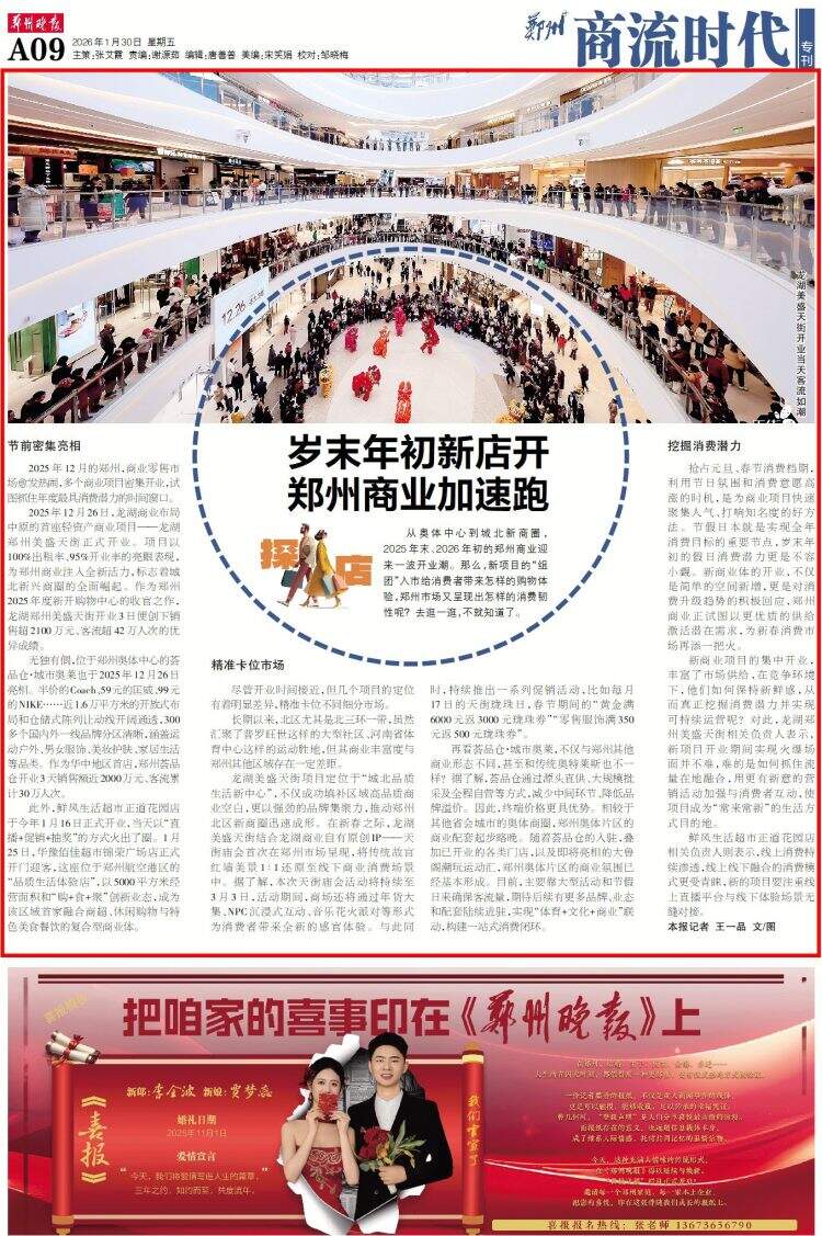 从奥体中心到城北新商圈,2025年末、2026年初的郑州商业迎来一波开业潮。那么,新项目的“组团”入市给消费者带来怎样的购物体验,郑州市场又呈现出怎样的消费韧性呢?去逛一逛,不就知道了。