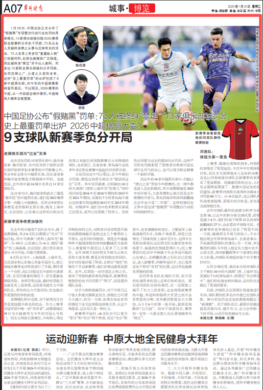 1月29日,中国足协正式公布了“假赌黑”专项整治行动行业处罚的具体情况,13家俱乐部被扣除2025赛季职业联赛积分并处于罚款,73名从业人员被终身禁止从事与足球有关的活动。73人名单上有多位“重量级人物”已经被判刑,此前也被媒体广泛报道,因此被终身“禁足”并不出人意料。而多达13家职业俱乐部被扣分并罚款,处罚范围之广、力度之大前所未有。这份“史上最重罚单”的出炉包括了9家中超俱乐部,对今年的中超联赛影响显而易见。可以预见,2026赛季的中超,从一开始就会格外惨烈,中超格局大概率会被重塑。