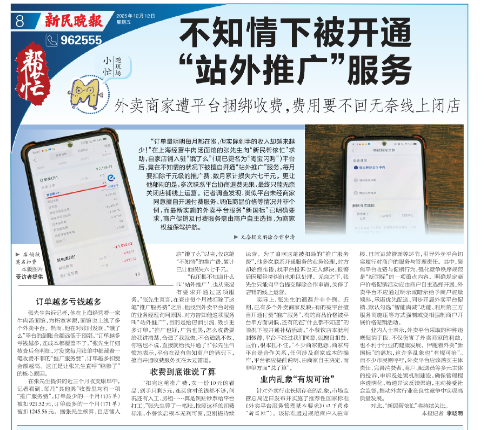 此前,已有媒体关注类似问题。2025年12月12日,《新民晚报》就曾报道,有上海商户在不知情下被淘宝闪购擅自开通付费推广服务,连续多月被扣款,最终因协商退费无果而无奈选择线上闭店。