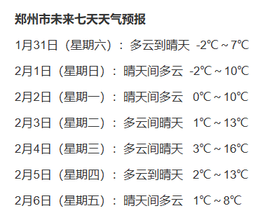 明天起,随着本轮雨雪过程结束,郑州气温将快速回升,预计2月1日起最高气温回升至10℃以上。同时,最低气温也在缓慢回升,但升温幅度小。早晚依旧寒意较深,提醒大家仍然要注意保暖。