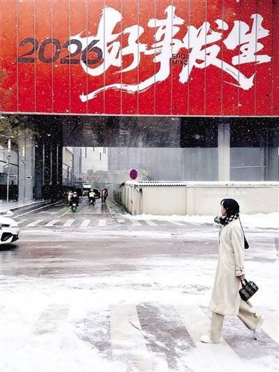 路过二七商圈,行至万象城一期二期之间的连廊,一句新春祝福语像是在对整座城市问好:“2026好事发生。”有人说,穿上白色外套的瞬间,就像抬头看到温暖的祝福语一样幸福。因为白色是专属于冬季的色彩,是洁白更是留白,让年纪隐去,让气质浮出。