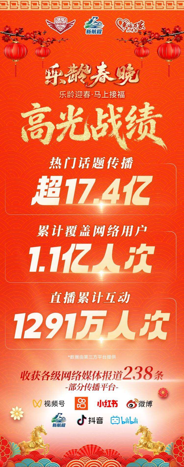 目前直播已落幕,中国教育电视台及江苏、山东、辽宁等多家卫视将在春节期间进行大屏播出,助力乐龄事业开启温暖新航程,续写乐龄芳华新篇章。