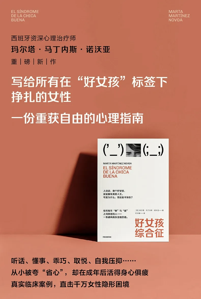 作者玛尔塔·马丁内斯·诺沃亚提出,“好女孩综合征”不是一种疾病,而是一种常见的、有问题的行为模式,它们让你在“讨好”中内耗,在“听话”中压抑,在“懂事”中逐渐忘记自己是谁,通常指女性为了满足他人期待而压抑甚至牺牲自己的需求和感受。