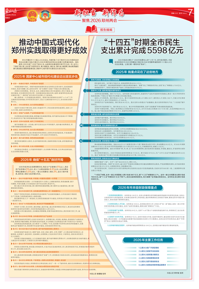 2025年钱花在哪儿?2026年钱要怎么花?2月7日,受市政府委托,市财政局将郑州市2025年预算执行情况和2026年预算草案提请市十六届人大五次会议审查。让我们看一看郑州的“账本”。