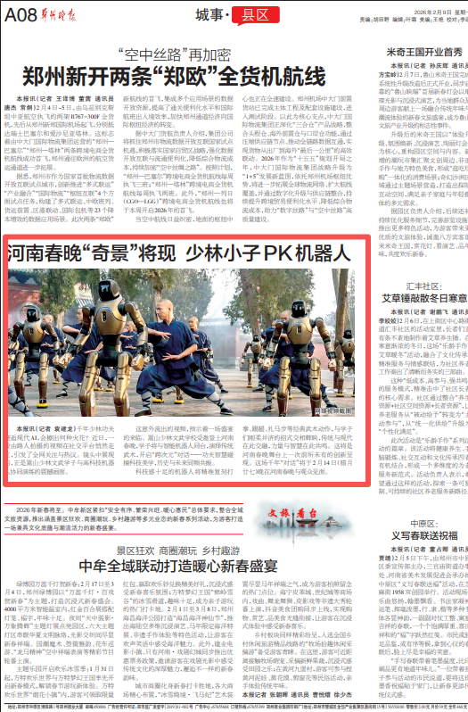 科技感十足的机器人将精准复刻打拳、踢腿、扎马步等经典武术动作,与学子们刚柔并济的招式交相辉映,传统与现代在此交融,力量与智慧在此共鸣。这将是河南春晚舞台上一次前所未有的创新呈现。这场千年“对话”将于2月14日(腊月廿七)晚在河南春晚与观众见面。