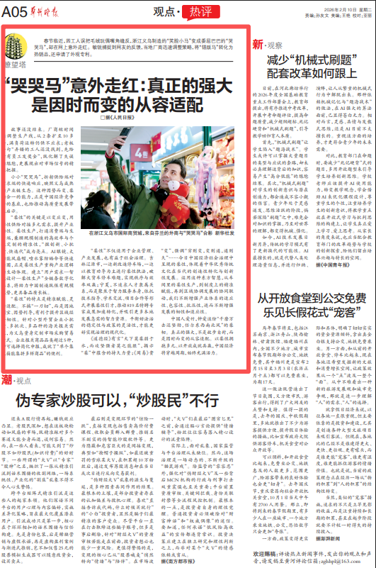 小小“哭哭马”,折射供给端对需求端的快速响应,映照义乌成熟的产业链生态。这种因势而变、柔韧合一的能力,正是中国经济竞争力的基底,也给推动高质量发展带来启示。