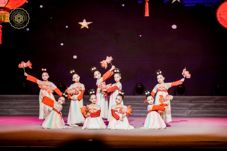 晚会在河南电吹管乐团带来的《北京喜讯到边塞》中开场,旋律磅礴,兼具民族风韵与交响张力,让每一位观众都沉浸在节日的喜悦之中;少儿舞蹈《烩面 真中!》紧随其后,孩子们灵动的表演,直击侨胞故土情怀;《跃龙门》《鱼灯乐》《踩雨乐》等少儿舞蹈将民俗喜庆与童真活力融合,让年味更浓;《太极扇》表演则刚柔并济,动静之间尽显中华武术的独特韵味;书法表演《翰墨迎春》中,墨香伴着古筝箫韵,作品落成时掌声雷动,书法家随后赠字,墨香传递家乡牵挂;晚会在全场大合唱《我和我的祖国》中圆满收官。