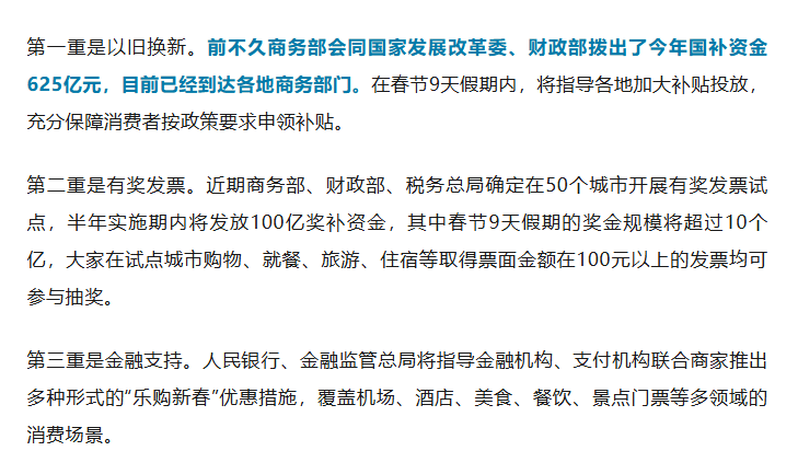 2月11日,国新办举行新闻发布会,介绍商务部联合9部门推出的 2026“乐购新春”春节特别活动,目前,各地已安排20.5亿元资金,在9天假期内将以消费券、补贴等形式惠及消费者。活动还推出三重消费礼包:
