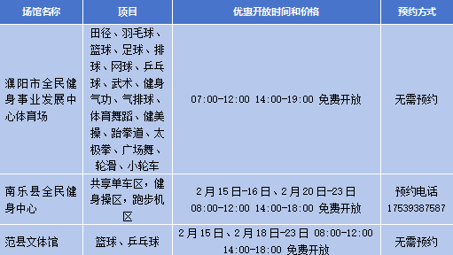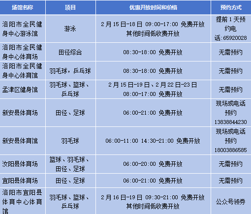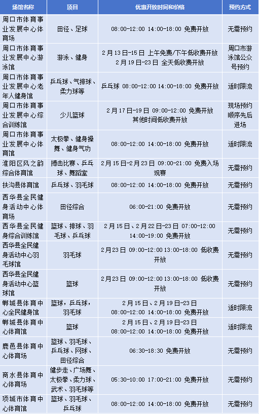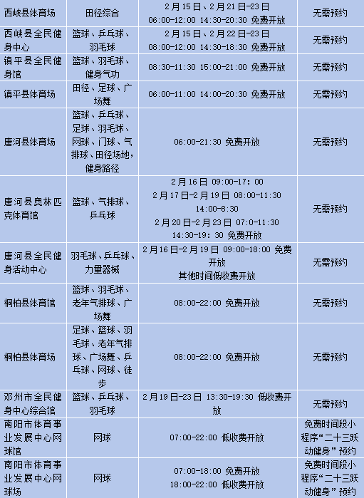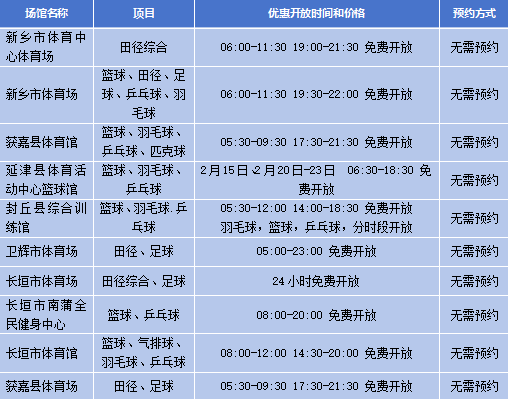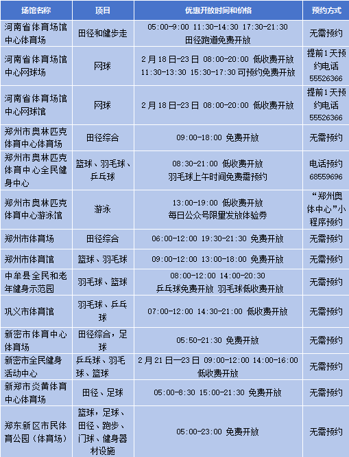 春节假期,河南省多个公共体育场馆设施将免费或低收费开放↓