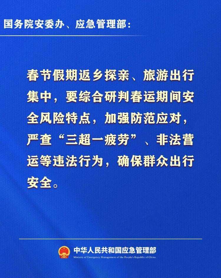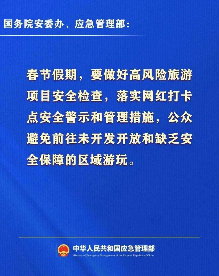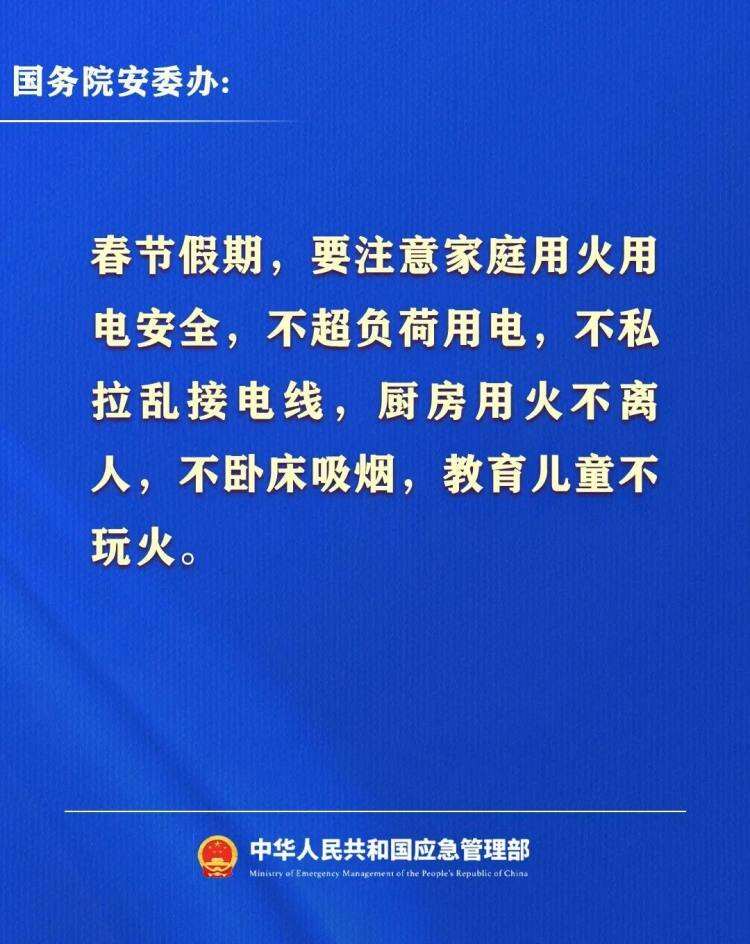 2月13日,国务院安委办、应急管理部发布2026年春节假期安全提示↓