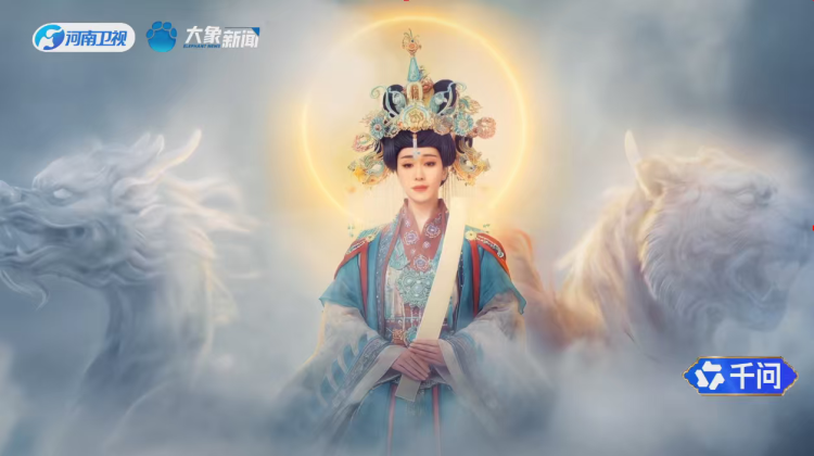 “永乐未央,入画仙界,在河南春晚看神仙!”舞蹈《永乐未央》则以极具冲击力视觉技术“复活”永乐宫壁画。青年舞者张翰化身“七百岁蓝釉角神”,于斗拱飞檐间演绎千年守护;“白描玉女”舞段以行云流水之姿,勾勒出东方仙境的空灵意境。舞者的演绎与数字特效无缝衔接,铺展成一幅沉浸式的仙界长卷,献上一场兼具文化厚度、视觉冲击与喜乐氛围的沉浸式视听盛宴。