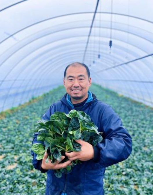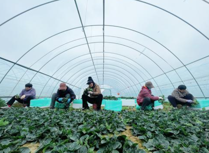 2月26日上午,广武镇村民王传中正在基地里采收趴地菠菜。他当天要收割5棚,预计产量5000斤,新鲜蔬菜很快就能运往各地市场。热气腾腾的生产场景,正是基地红火发展的真实写照。